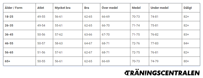 Vad betyder siffrorna i en vilopuls-man-tabell?